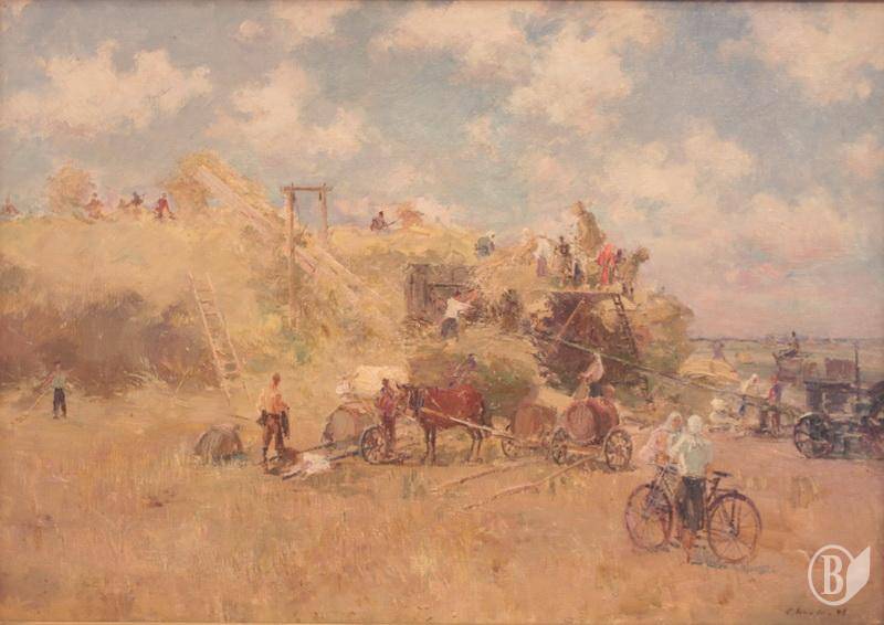 - Шишко С.Ф.(1911-1997), Молотьба в колгоспі ім.Фрунзе, 1948. Полотно, олія. 66x93