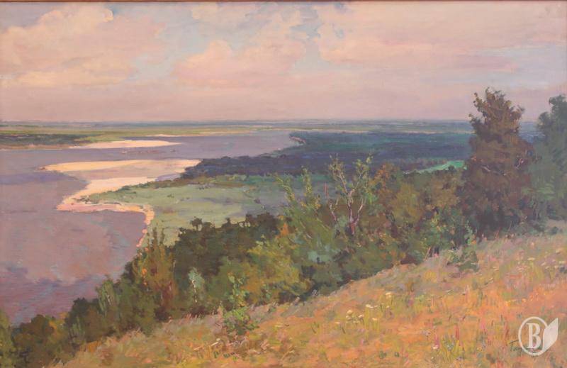 - Глущенко М.П. (1901-1977). Дніпровські далі. 1957, Полотно, олія, 96x150