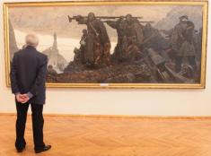 - Басанець П,0.(1926-2007). Батьківщина в небезпеці. 1985. Полотно, олія. 200x3005