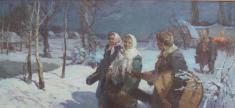 - Горовий І.К, 1924-1968). На трудодні. 1950-ті роки. Полотно, олія. 80x120