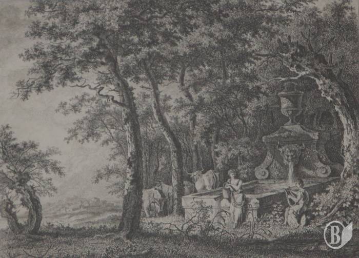 В большинстве случаев к офорту относили углубляющую гравюру на металле, выполненную методом травления (травленный штрих). Большинство эстампов в экспозиции выполнено именно в такой техникой („Пейзаж с фонтаном" Соломона Геснера).