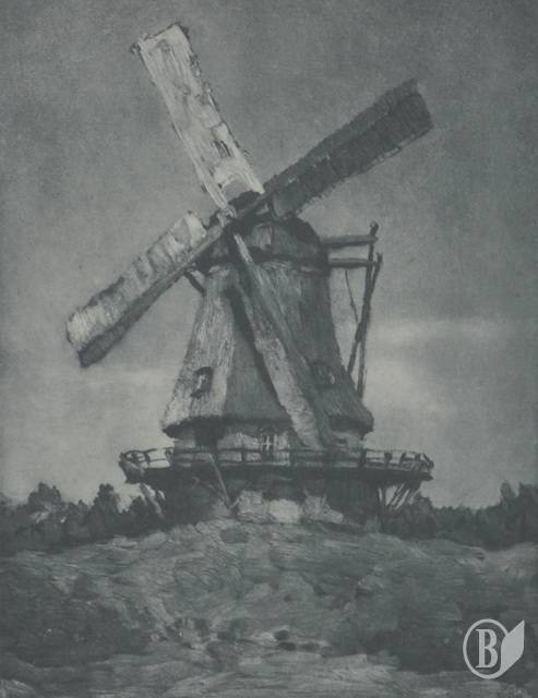 Во второй половине XIX в. в Германии возрождается творческий эстамп. Ориентируясь на французские традиции, в Мюнхене была организована школа офорта. В экспозиции представлены произведения немецких художников „Мельница", „ Женщина с попугаем", „ Адам и Ева".