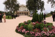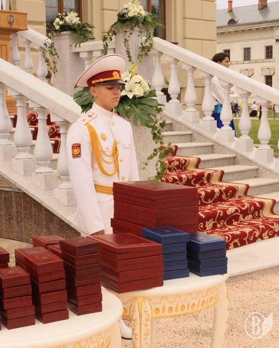 В своей речи Глава государства отметил важность того факта, что в реализации проекта восстановления дворца активное участие приняли меценаты. Глава государства поблагодарил всех, кто приобщился к восстановлению дворца - архитекторов, строителей, историков, реставраторов, представителей власти и меценатов, - «за исключительно праздничный подарок украинской нации и украинскому государству».