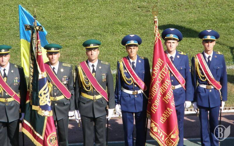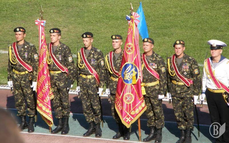 Перед началом выступлений к участникам парада обратился временно исполняющий обязанности Министра обороны Украины Валерий Иващенко.