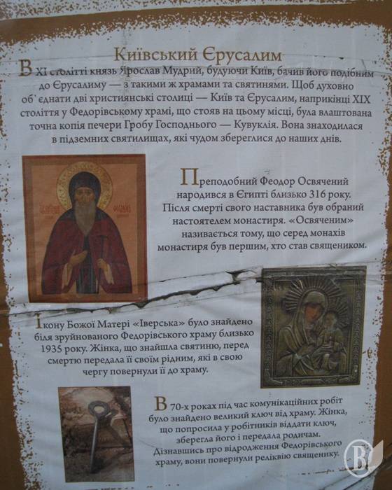 Совсем скоро отстроят Храм в честь преподобного Федора Освяченого в Киеве. Он еще в ХІХ в. получил славу киевского Иерусалима, поскольку содержал точную копию Гроба Господнего.