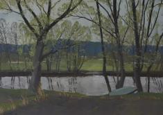 Есть в наработке художника произведения, которые поражают своим эпическим размахом, панорамностью. В них все величествено, преисполнено своеобразным мироощущением, могучие горы тают в голубом небе («Говерла» 1983, «Весна в Синевире», 1983).