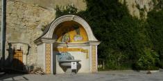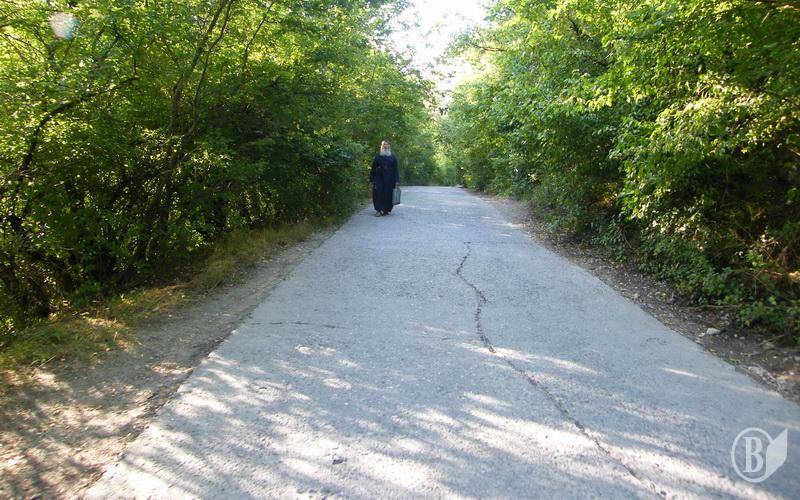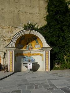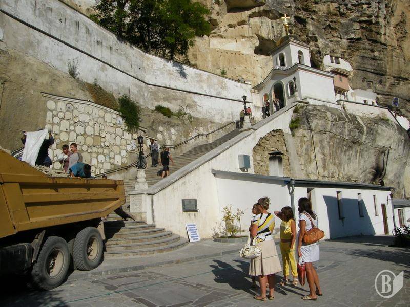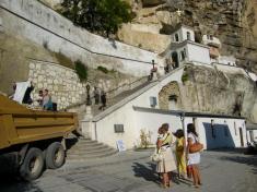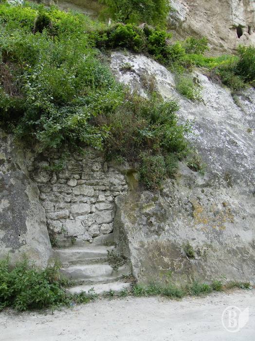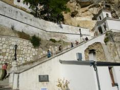 Широкая лестница, которая идет от дороги, постепенно углубляется в горный массив и направляется на площадку второго яруса. Отсюда более узкая лестница выводит в главную Успенскую церковь, построенную в отвесной скале.