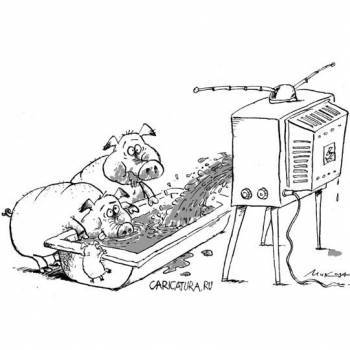 Подана думка трьох людей разом з їх родинами. Карикатуру малювала теж не редакція і виникла вона явно не від доброї якості того що ллється з екрану... Хоча є освітні спеціалізовані канали, проте вони лише у кабельному і дорогому пакеті.