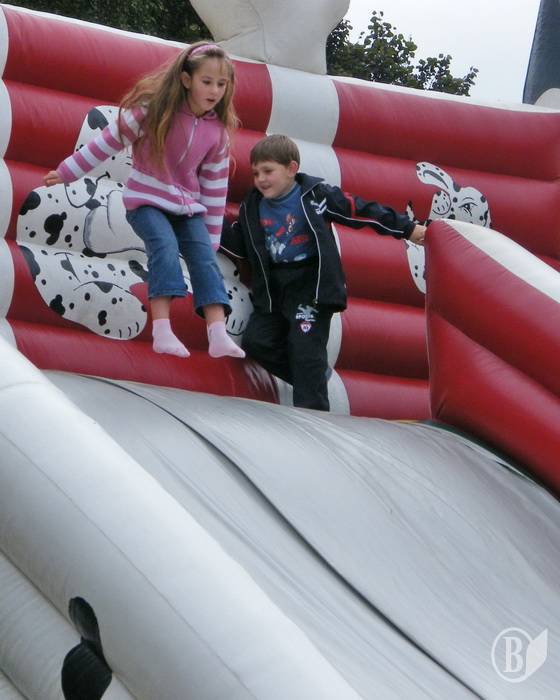 Після 12-ї години таки почало працювати дитяче містечко, анонсоване у програмі святкування на 11-ту. Хлопці, до речі, вдало його розмістили: генератор лишився незадіяний на газоні та й лічильника не помітиш.