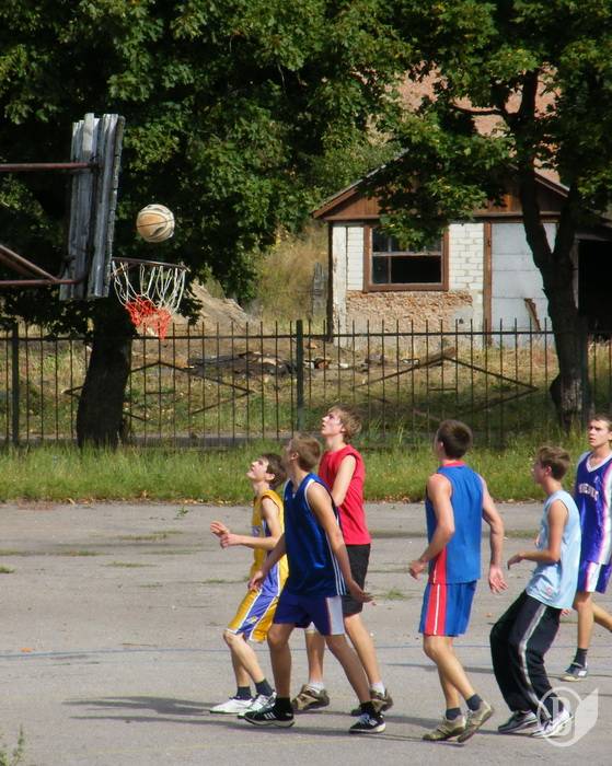 Поки діти стрибали під пісні зі старих добрих радянських мультфільмів, на міському стадіоні тривав матч першості району з футболу. «Зелені» грають проти «білих». Починають, ведуть, обходять захист і... гол! Один, другий...