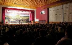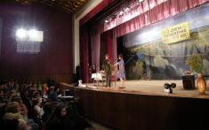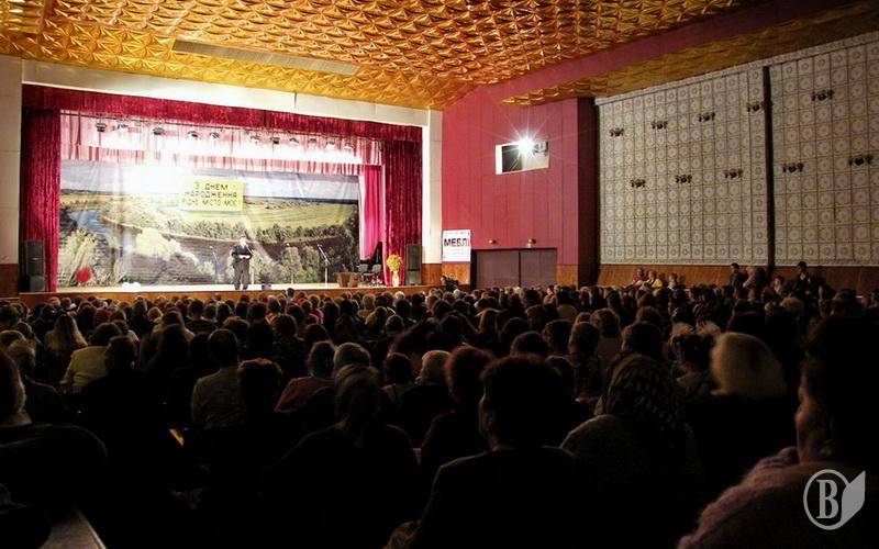 Святкував менський народ у будинку культури. Слухав привітаня, дивився вистави. Зал заповнений. Навіть у проходах.