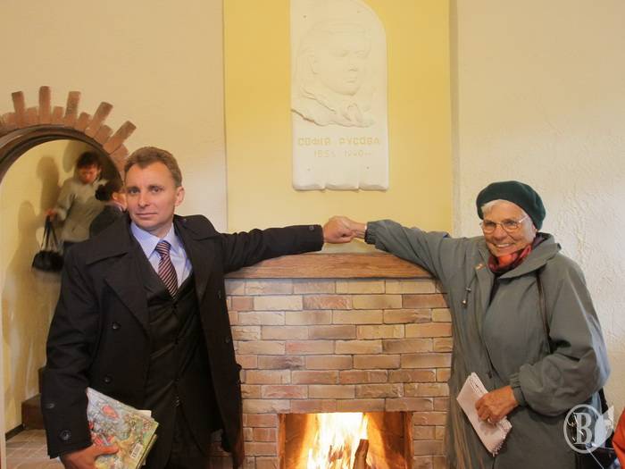 Прибули й гості з-за океану - прапраонука Софії Русової Ірина Михалевич-Ткаченко з канадського міста Ніагара-Фолс разом зі своїм зятем Патріком Кермікелом (він живе в Каліфорнії).