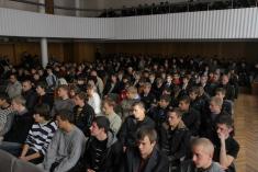 Интересным и развесистым было также выступление ветерана Вооруженных Сил, капитана первого ранга запаса, бывшего командира атомной подводной лодки Игора Гулатвы. Эти люди много знают об армии и им было что рассказать будущим солдатам.