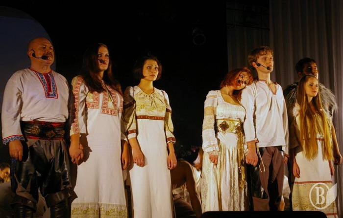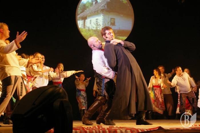 – Конечно. Прочитано и изучено было много. Каждый момент на сцене несет в себе определенную символику. Вот большие колокола над сценой, например, – они всегда извещали людям как о добре и радости, так и о беде и горе. Волчьи шкуры – это признак тайной сверхсилы казаков, упоминание о вурдалак, о характерниках, о сильном государственном строе запорожцев. Для этого прорабатывались научные исследования, исторические труды о Запорожской Сечи: Яворницкого, например, других авторов.