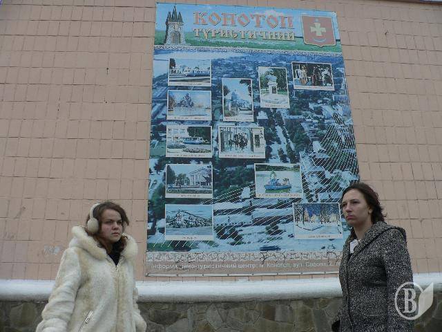 Вранішня прогулянка зимовим, іще незасніженим містом. Здиблений кам`яний кінь рудого кольору – символ Конотопу. В місцевому Краєзнавчому музеї нам розповіли легенду: як навколо невеличкого вкраїнського поселення на кілометри простягалися непрохідні болота; захистом вони були не гіршим за фортецю, – потонуло в них не одне кінне вороже військо; то й стали називати селище Конотопом.