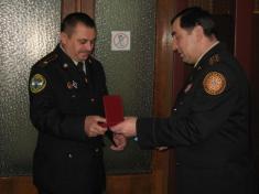 Головний рятувальник Чернігівщини полковник служби цивільного захисту Віктор Джунь вручив начальнику відділу з питань наглядово-профілактичної діяльності Ніжинського райвідділу майору служби цивільного захисту Віталію Кравченку та начальнику навчально-методичного центру цивільного захисту та безпеки життєдіяльності полковнику у відставці Сергію Бочці заслужені нагороди - почесні відзнаки МНС України. Ще ряд співробітників були відзначені грамотами.