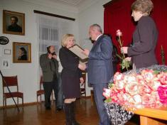 Итак, заходим из заснеженной улицы в просторный холл, где гостей встречает экскурсовод музея и сопровождает в зал для церемонии. На парадной лестнице, покрытой ковром, представители телевидения берут экспресс-интервью у участников мероприятия. Пока проходишь выставочные залы музея, вслушываешься в классическую музыку Квартета струнных инструментов Черниговского музыкального училища им. Л. Ревуцкого.
