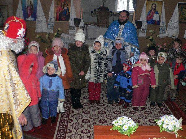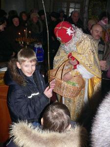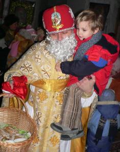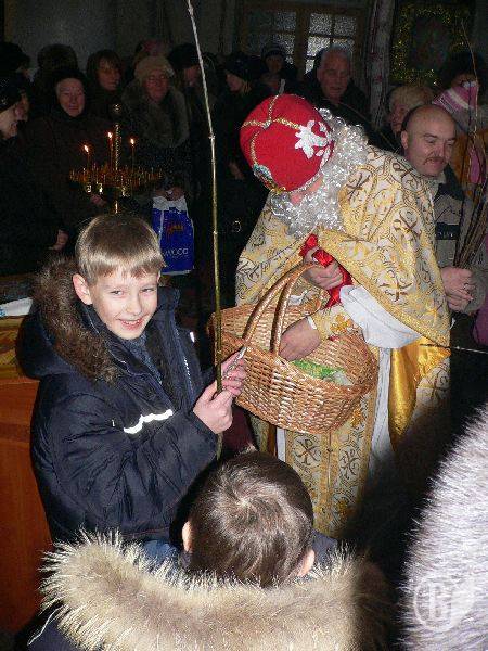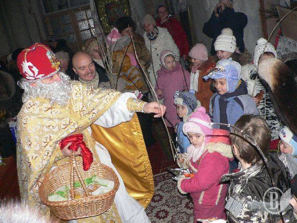 Ви хвилюєтесь, розповідаєте, співаєте... Дорослі дивляться, слухають, посміхаються, підтримують... І коли ви усі хором кличете: "Ми-ко-лай!", – він згори, озивається: "Чую! Чую!", і з`являється на внутрішньому балконі церкви. Спускається до діток, наче з неба, розпитує про успіхи: чи вмієте читати, рахувати, чи знаєте молитви. Дарує подарунки: солодощі, пряники-миколайчики і.. різки, про всяк випадок, напівжартома.