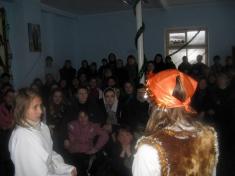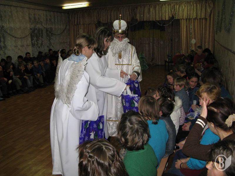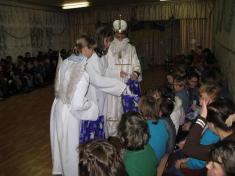 Святий Миколай разом зі своїми помічниками ангелами показали дітям виставу і роздавали подарунки. Це були солодощі а також духовна пожива у вигляді друкованого слова – журнали і книжички на християнську тему.