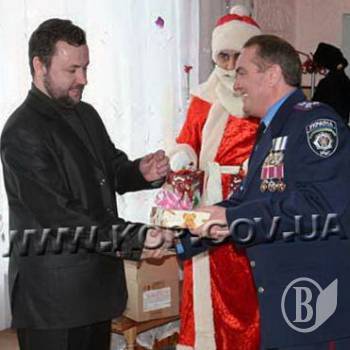 О создании праздничного настроения для них позаботились шефы из Управления МВД в области в лице заместителя начальника управления – начальника УКЗ УМВД Украины в Черниговской области полковника милиции Виктора Титоренко, который проведал малышню в канун Новогодних праздников.