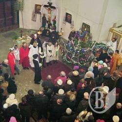После праздничного Богослужения, которое провел Владыка Илларион в Катерининский церкви, прихожане казацкого Храма и гости Чернигова с восторгом посмотрели Вертеп с участием Черниговских националистов.