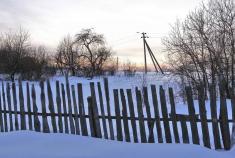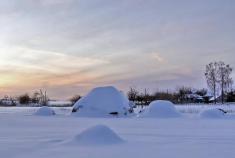 Холодно. Но чего не сделаешь ради прекрасного. То тут, то там стоят одиночные избушки. По улице бежит одинокая тропинка, которую по-видимому протоптали собаки.