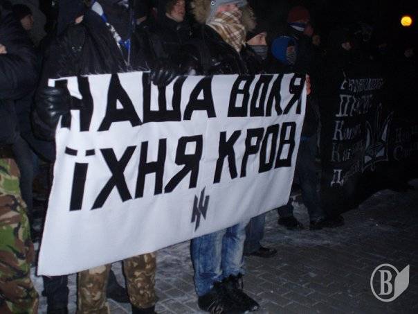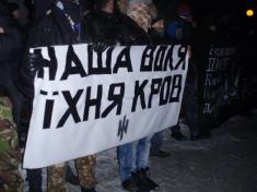 Во время марша активисты привлекали внимание прохожих к своей акции с помощью громких дружных лозунгов «Наша свобода – их кровь», «Слава Украине! Героям Слава!» и ярких «фаеров». Над колонной реяли черные, красно-черные и желто-голубые стяги.