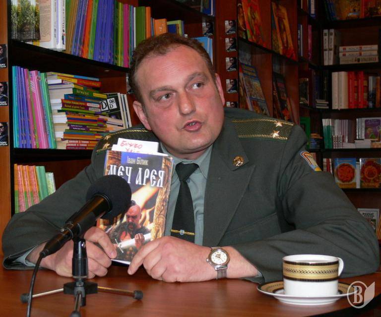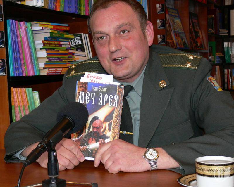 19 марта в черниговском Культурно-художественном центре"Интермеццо"в рамках социального проекта «Человек с книгой» читал книгу Ивана Билыка «Меч Арея» начальник регионального медиа-центра Министерства обороны Украины подполковник Валентин Буряченко.