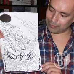 Во время открытия выставки, художник осуществил художественный «перформенс». Обеими руками, левой и правой, сделал подарочную надпись на листе бумаги.