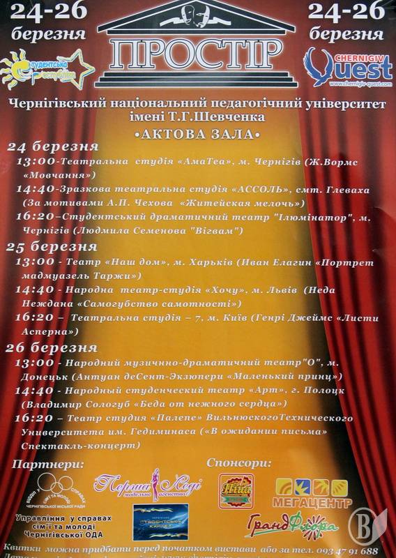 ІІ Международный Молодежный Театральный Фестиваль «Пространство» начался в Чернигове. Фестиваль будет длиться с 24 по 26 марта.
