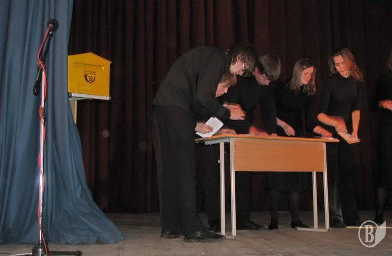 - и, наконец, самые дальние гости фестиваля – театр студия "Палэпэ" Вильнюсского Технического Университета имени Гедиминаса и их спектакль-концерт "В ожидании письма". От них зрители смогли насладиться полной гармонией души и прекрасного пения актеров. Хотя и представление было на литовском языке, это не помешало зрителю услышать знакомые ноты, которыми заиграли "отложенные в шкаф" чувства.