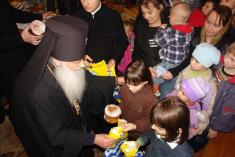 Но лишь концертом праздник для маленьких черниговцев не ограничился. При поддержке народного депутата Украины Валерия Дубиля Черниговская епархия УПЦ организовала благотворительную акцию «Мы дарим праздник Пасхи».