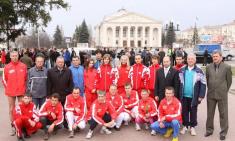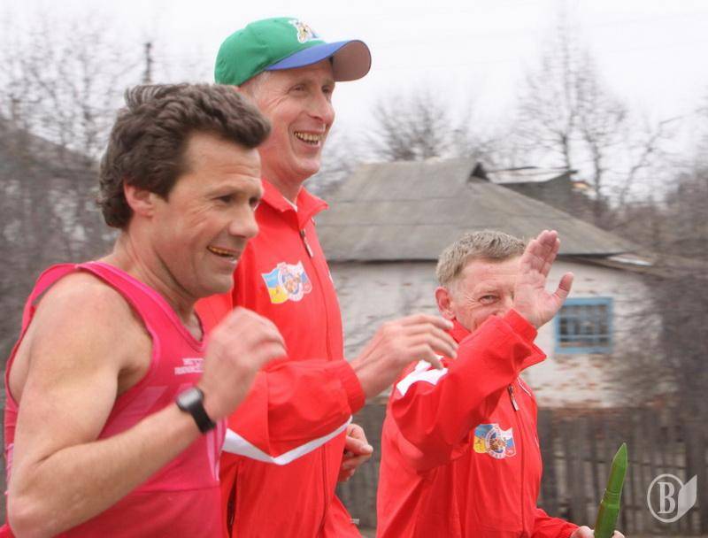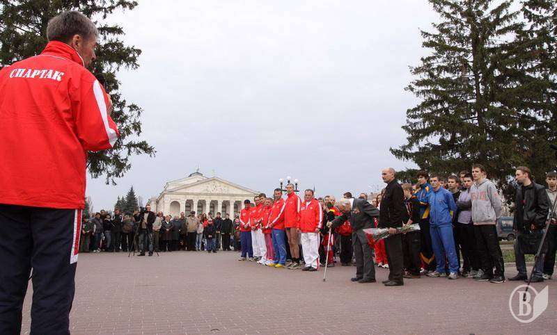 В Чернигове бегунов приветствовали ветераны войны, труда и спорта, молодые спортсмены, представители власти и общественности.
