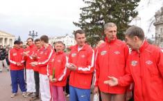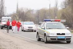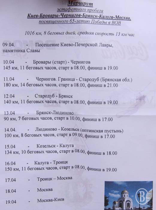 В Чернигов 10 апреля прибыли участники международного марафона"Киев-Москва", посвященного 65-летию Победы. На следующий день, в воскресенье 11 апреля они отправились дальше.