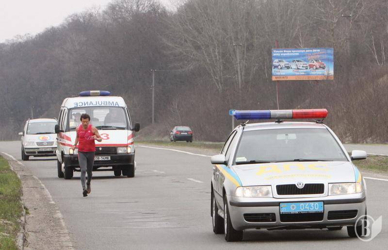 Они бегут по очереди со средней скоростью 13,5 км/год., передавая из рук в руки гильзу Победы и Дружбы, наполненную украинской землей. За день один спортсмен пробегает 30 км.