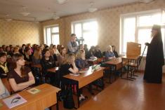 Владика Амвросій розповів студентам про день Жінок-Мироносиць, його історію, та значення свята для сьогодення. Адже це свято – свято кожної православної жінки. І саме Жінки-Мироносиці являли нам приклад любові, котрої зараз нам не вистачає. «Хочеться побажати, щоб прикладом цієї жертвенної любові і наші холодні серця загорілись такою любов’ю, котра може спалити усілякі гріхи та страх, зробити людину вірною до кінця, без меж, без оглядки», - з такими словами звернувся до студентів владика Амвросій.