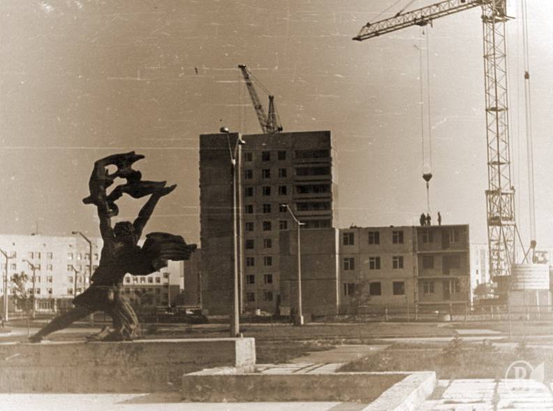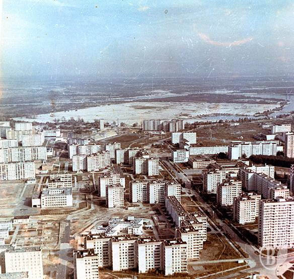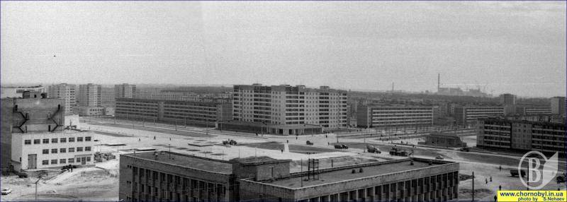 Панорама центральної частини міста з видом на ЧАЕС, що будується. Автор - С.Нехаєв. Весна 1980 року.