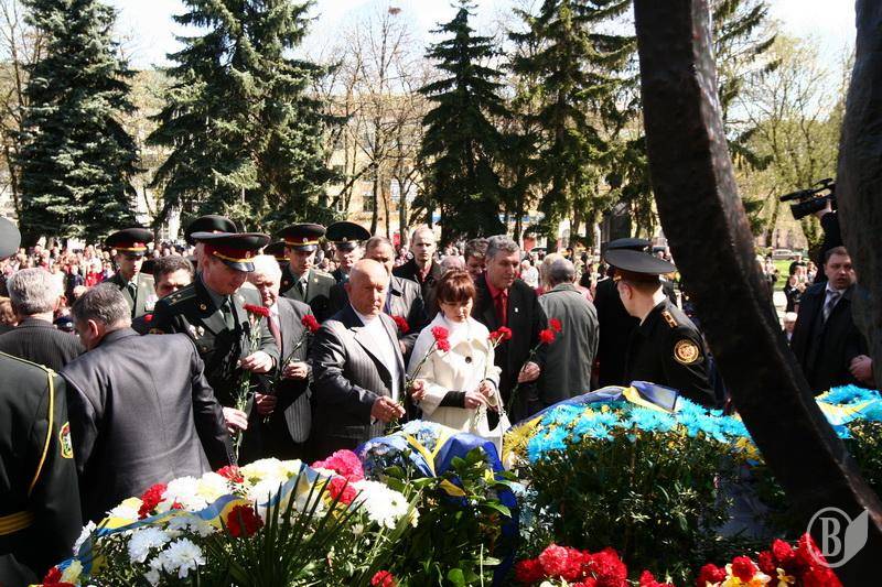 „На жаль, близько 1200 чоловік із них вже немає серед нас. Чорнобильський атом передчасно забрав їхнє життя. Нині, у 24-ту річницю Чорнобильської катастрофи, схилимо голови перед пам’яттю усіх, хто пішов у ядерний вогонь, щоб зупинити ланцюгову реакцію смерті, хто виконав свій священний обов’язок перед рідною землею”, - сказав Володимир Хоменко.