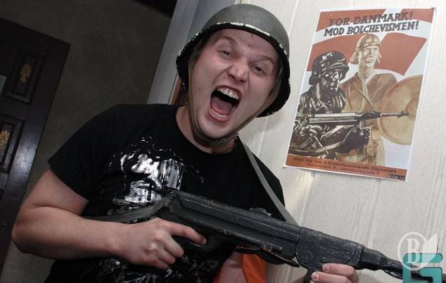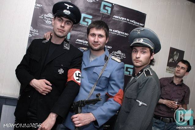 Пошив повязки со свастикой, флаг, надев немецкие фуражки и пилотки 40-х годов, модные молодые люди отплясывали за немцев в 45-м. Фотографии не постеснялись выложить в интерет (они приведены ниже – «ВВ»).