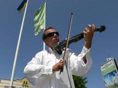 Житель Дніпропетровська Андрій Петров дав сьогодні концерт під відкритим небом усім небайдужим до прекрасного чернігівцям.