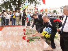 У день скорботи у Чернігові полеглих воїнів вшанували покладанням квітів у сквері ім. М.М.Попудренка та до вічного вогню на Меморіалі Слави.