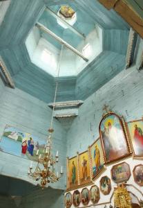 Дерев’яна церква – унікальна пам’ятка архітектури. Але місцеві «реставратори» від православ’я спотворили її бляшаним дахом і фарбуванням стін.