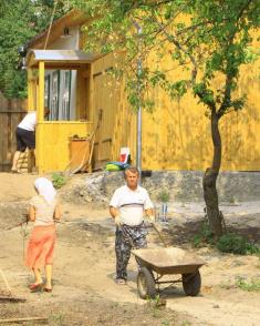 Сегодня строители и верующие люди, которые приезжают из разных уголков Чернигова и даже других регионов, обустраивают двор. Они тщательным образом выкорчевывают корни старых кустов и деревьев, убирают строительный мусор, высаживают и поливают цветы, красят новые ворота и забор. Ежедневно это дело собирает около 10-20 добровольных помощников.