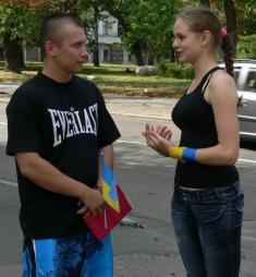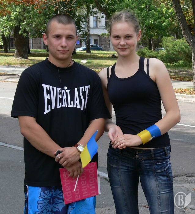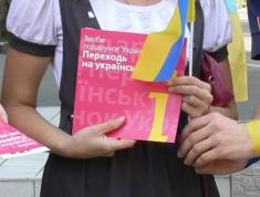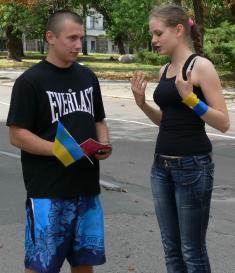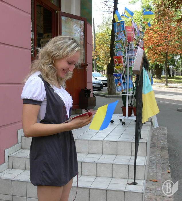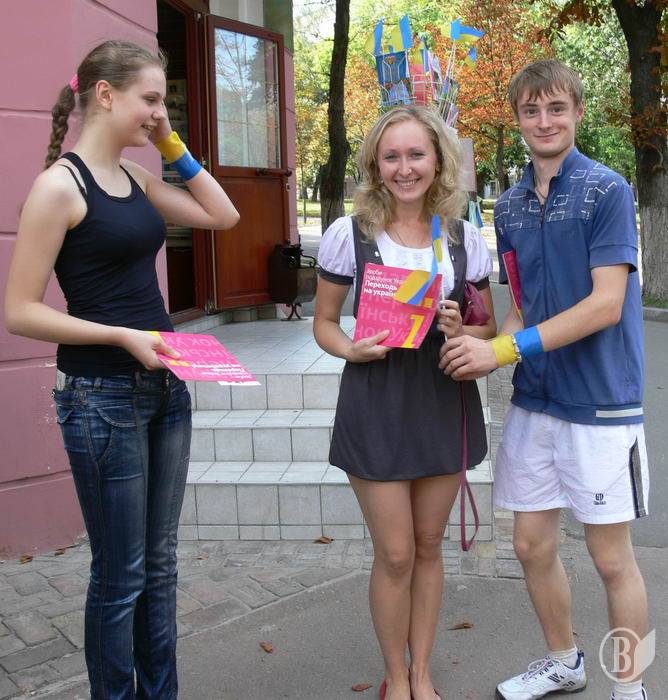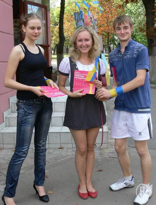 Вместе с флажками жители Чернигова и гости города получали брошюру «Сделай подарок Украине – переходи на украинский».