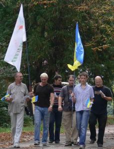 Акция началась в 12.30 поступью от храма свв.князя Михаила и его боярина Федора (прежнее имение Павла Полуботка), и завершилась по ул.Шевченко около Культурно-художественного центра «Интермеццо».