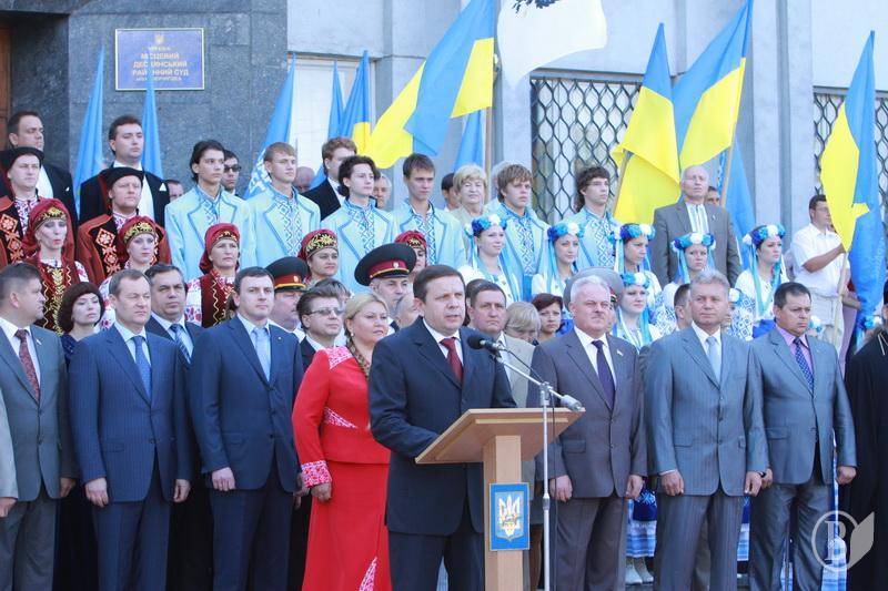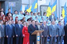 «Каждая нация, которая добывает суверенитет и перестраивает государство, избирает символы своего единства, свободы, демократии. Государственный флаг – это воплощение традиций создания государства, славы и возрождения Украины, ее истории и настоящего. Под национальным стягом прославляются высокие научные, культурно-художественные, спортивные достижения Украины, творятся общегосударственные и общественные свершения», - обратился к собравшимся с поздравительным словом глава облгосадминистрации Владимир Хоменко.