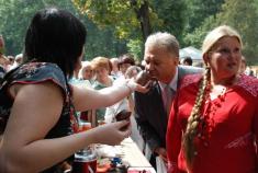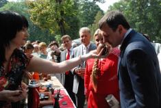 Під час свята-ярмарку квітів та плодів «Щастя краси» у Центральному парку культури та відпочинку чернігівський міський голова Олександр Соколов та голова Чернігівської обласної ради Наталія Романова взяли участь у своєрідній «чайній церемонії».