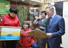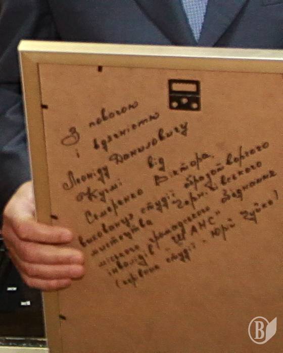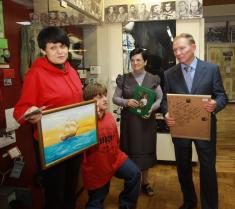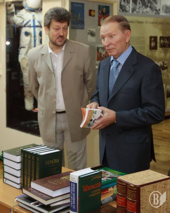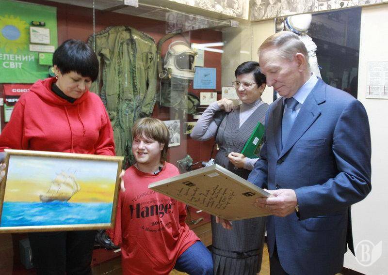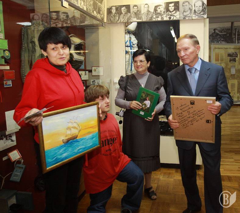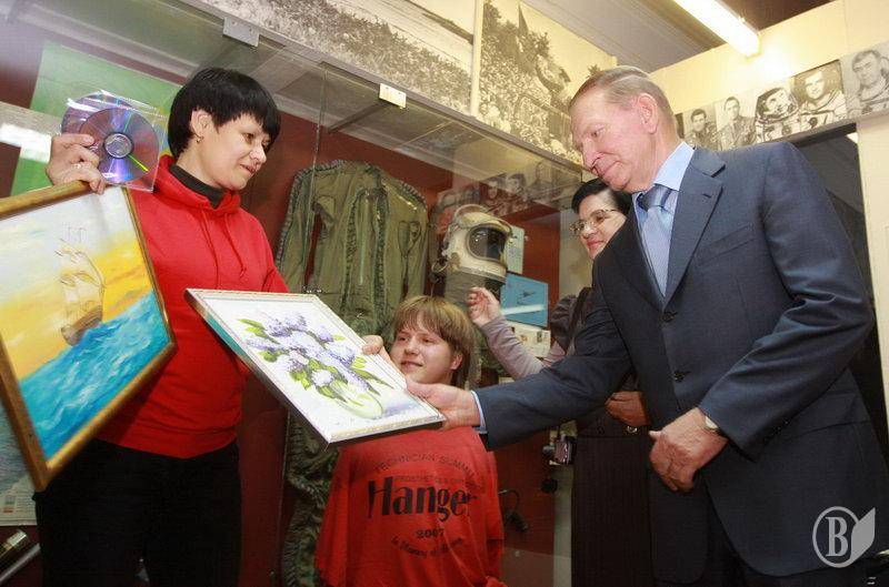 В музее состоялась встреча Л.Кучмы с Виктором Семеренко. Получив в подарок две картины, Леонид Даниилович ответил взаимностью.