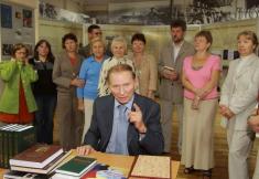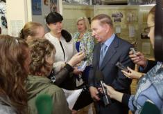 Леонид Данилович осмотрел экспозиции и фонды музея. Он сознался, что со времен президентства впервые посещает этот музей.