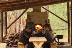 Работы по воссозданию партизанской стоянки были начаты в прошлом году и осуществлялись за средства областного и районного бюджетов, а также бизнесовых структур. На сегодня здесь отреставрированы 3 партизанских землянки и построены 2 новые. Кроме того, на территории лагеря построена партизанская печь, возобновлены сырой партизанский колодец и окопы.